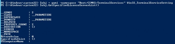 $obj = gwmi -namespace "Root/CIMV2/TerminalServices" Win32_TerminalServiceSetting