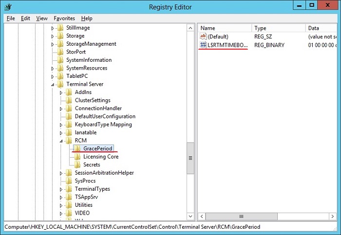 HKEY_LOCAL_MACHINE\SYSTEM\CurrentControlSet\Control\Terminal Server\RCM\GracePeriod<br>